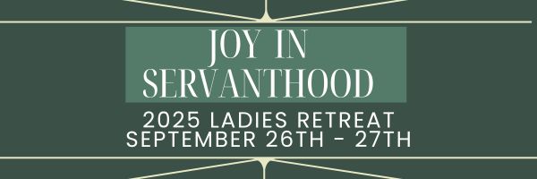 Join us for our first Ladies' Retreat! Come for a weekend of fellowship, spiritual encouragement, and activities. This retreat is for ladies and teens, 7th grade and older, and will have sessions centered around "Joy in Servanthood". There will also be dedicated times after the sessions to dive deeper with a small group.